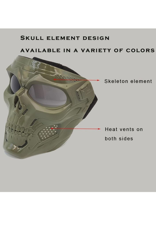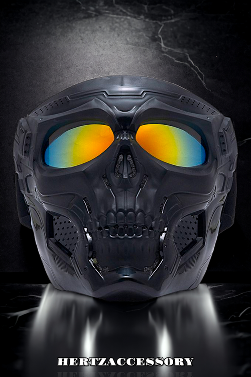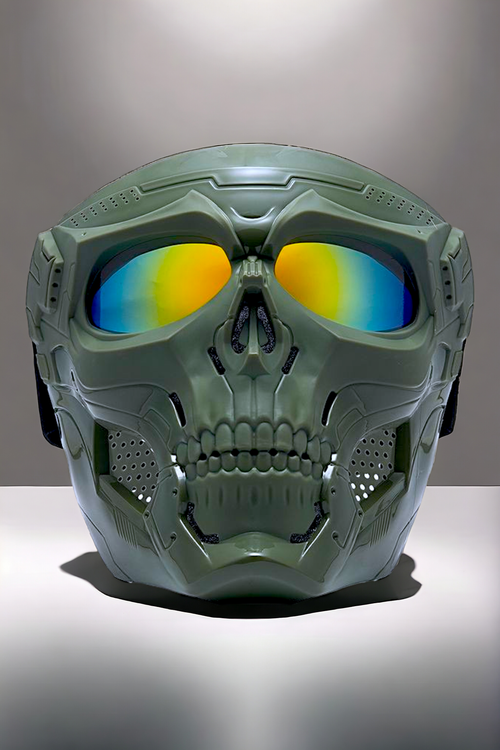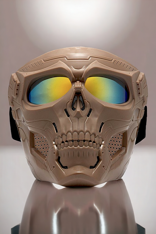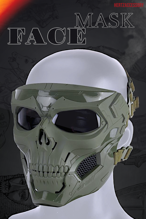 ماسک با طرح اسکلت( نظامی ) در رنگ بندی های مختلف ، با کش های پهن، قابل تنظیم برای سایز های مختلف در همه ابعاد. به نوعی این نقاب برای شیلد و فیس گارد موتورسواری نیز استفاده می شود و دارای قسمت های تهویه هوا ، با اسفنج اکوستیک پوشانده شده است.