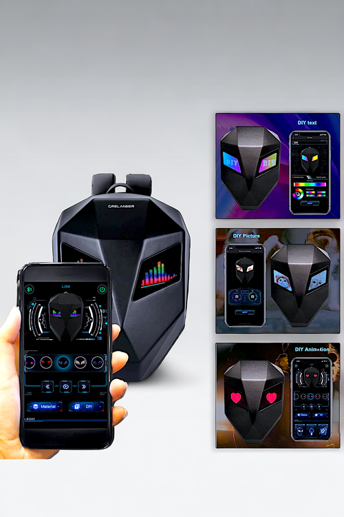 کوله پشتی CRELANDER LED Knight Backpack از خاص ترین کوله ها که قابلیت اتصال از طریق بلوتوث به تلفن هوشمند داشته و طرح ها و نوشته های انحصاری را به نمایش میگذارد ، این کوله پشتی از جنس ABS ,polyester بوده که از ویژگی های آن ضد تعریق ، ضد اب بودن و ضد ضربه میباشد که با اتصال به پاور بانک برق مورد نیاز را تامین میکند ، ابعاد کوله پشتی 36x18x48CM و سایز صفحه نمایشگر ها هر کدام 7x10x9CM میباشد و ظرفیت ان 35 لیتر و قابلیت حمل همزمان کلاه کاسکت ، لب تاپ و کتاب و ... میباشد . از این کوله میتوان در مدارس ، دانشگاه ها و موارد ورزشی از جمله موتور سواری ، اسکی و کلیه امور استفاده نمود