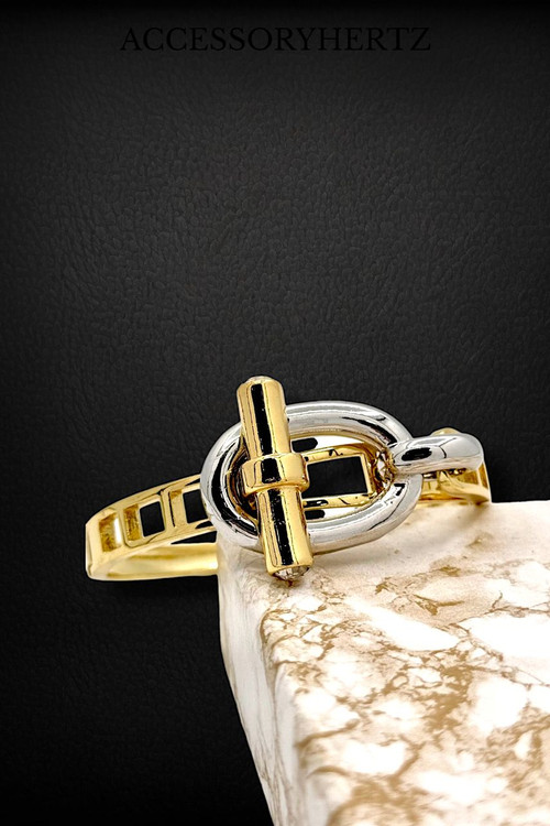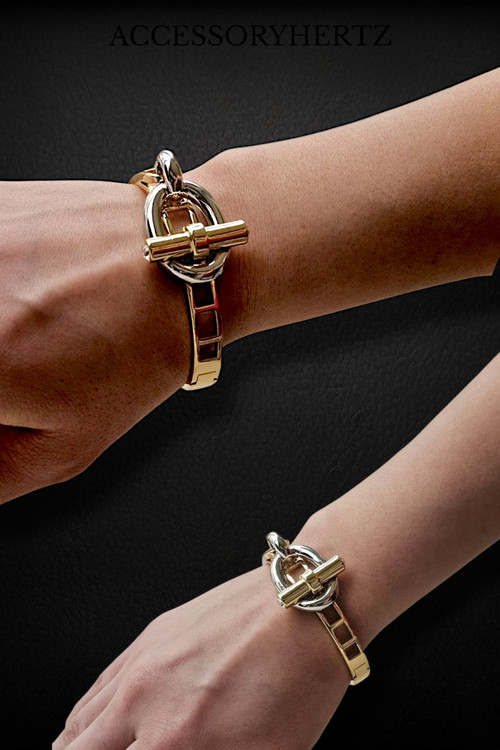 دستبند النگویی مدل هرمس با طراحی لوکس و ساده، از استیل 316 ضد زنگ و با کیفیت بالا ساخته شده است. این دستبند با رنگ طلایی ثابت، ظاهری مینیمال و شیک دارد که بدون نگین طراحی شده و برای خانمهایی با سلیقه مدرن بسیار مناسب است. قفل T کلاسیک آن، در کنار فرم النگویی، استفادهای راحت و ایمن را فراهم میکند. این محصول همراه با بستهبندی هدیه عرضه میشود و گزینهای فوقالعاده برای هدیه دادن به عزیزان یا تکمیل استایل شخصیتان