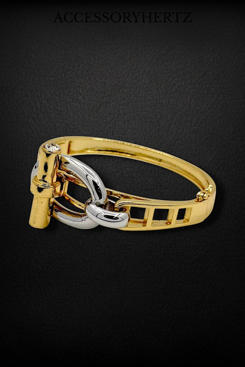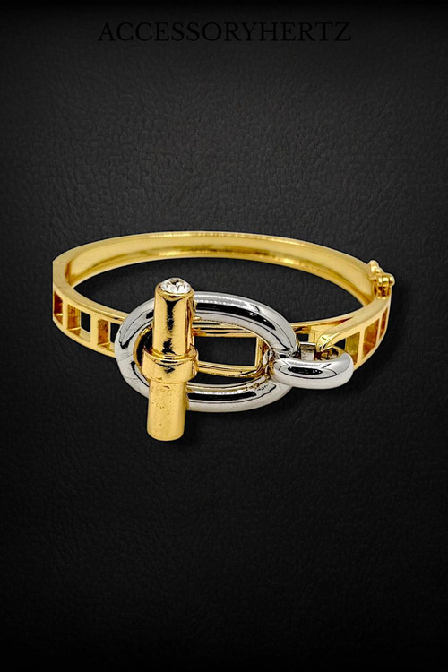 دستبند النگویی زنانه هرمس استیل طلایی | ضد حساسیت و رنگ ثابت