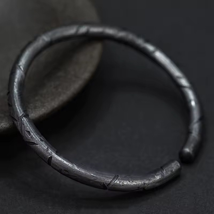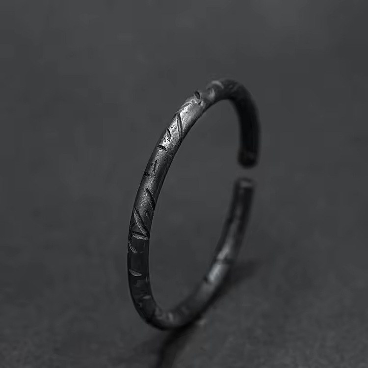 دستبند مشکی مردانه با طراحی الهامگرفته از شاخههای بامبو، انتخابی منحصربهفرد برای استایلهای خاص و رترو است. ساختهشده از متریال فلزی با طرح گیاهی (PLANT)، این دستبند ظاهری شیک و کلاسیک دارد و مناسب استفاده روزمره یا شرکت در مهمانیهاست. طراحی باز (Open Cuff) و قابلیت تنظیم سایز، باعث میشود برای انواع مچ دست مناسب باشد.