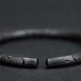 دستبند بامبو مشکی مردانه – طراحی حکاکی شده رترو، قابل تنظیم