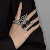 حلقه زنانه طرح پروانه و گل مشکی | سبک وینتیج پانک | فلزی، قابل تنظیم، طراحی خاص