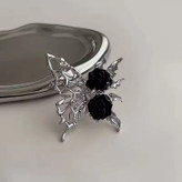 حلقهی فلزی زنانه با طراحی پروانهی سیاه و گل رز مشکی، مناسب علاقهمندان به سبک وینتیج و پانک. قابل تنظیم برای انواع سایز انگشت، مناسب استایلهای خاص، گوتیک و فانتزی.