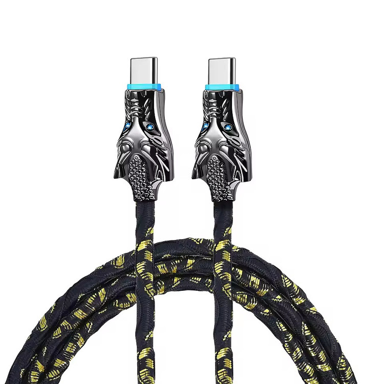 کابل Type-C طرح اژدها Quark Worla | سر فلزی شبیه کله اژدها، شارژ سریع PD | کابل مقاوم بافته | 1m