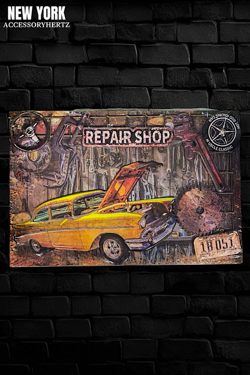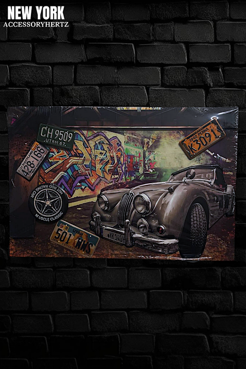 تابلو فلزی سهبعدی با طرح ماشین کلاسیک قدیمی، مناسب دکور دیواری سبک صنعتی، کافه، گاراژ، اتاق بازی و دکوراسیون وینتیج