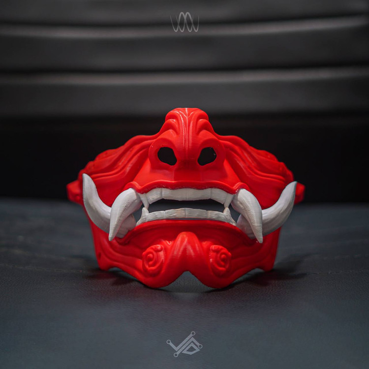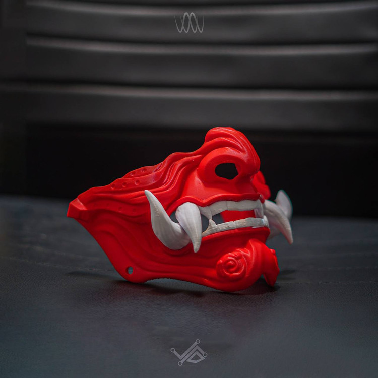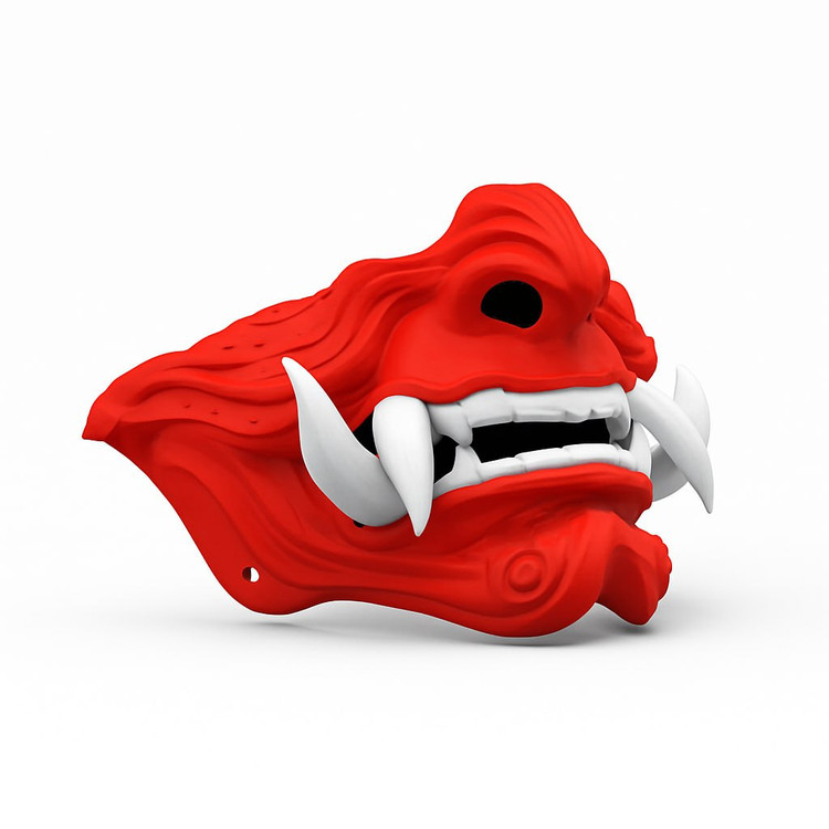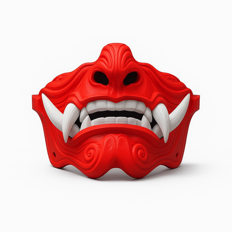 ماسک دیو ژاپنی (Oni) قرمز – چاپ سهبعدی، قابل نصب روی صورت