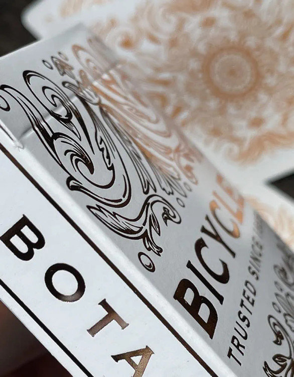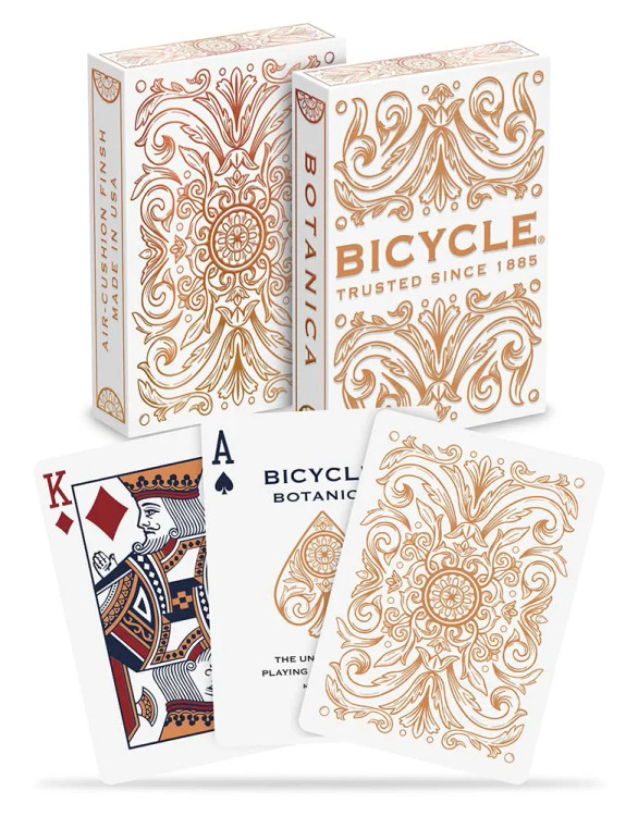 پاسور Bicycle Botanica یکی از خاصترین سری کارتهای بازی برند آمریکایی بایسیکل است. این ورقها با طراحی الهامگرفته از طبیعت و جزئیات گلوگیاه، همراه با فویل براق مسی، جلوهای لوکس و هنری دارند.