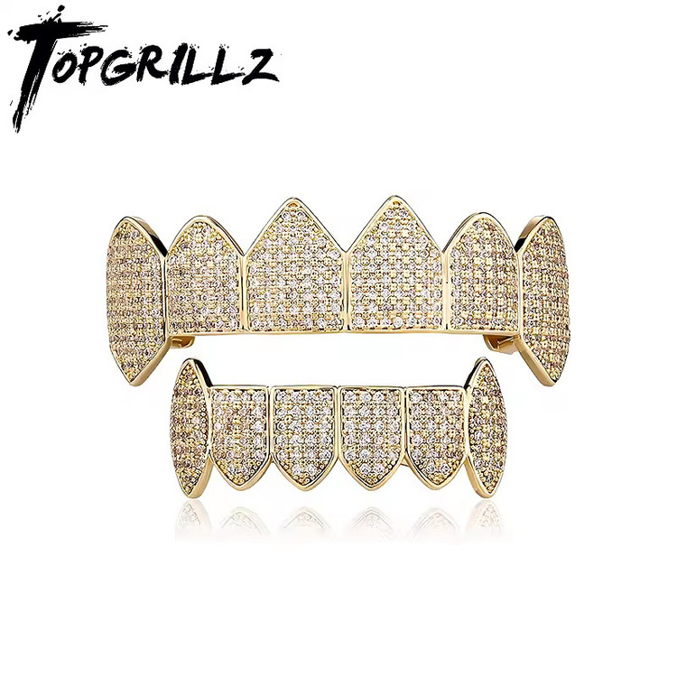 گریلز دندان هیپ هاپ طلایی و نقرهای Topgrillz مدل Fang – دکور دندان فانتزی و فشن برای مردان و زنان
