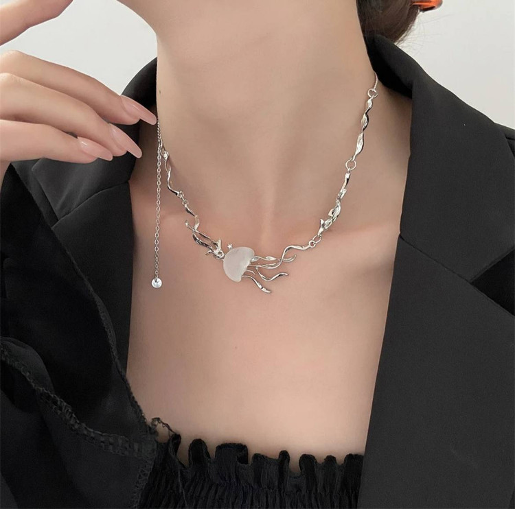 گردنبند زنانه طرح عروس دریایی با طراحی خاص و مدرن، دارای آویز منگولهای الهامگرفته از حرکات ظریف عروس دریایی در اقیانوس. رنگ مات و فرم نامنظم گردنبند، ظاهری هنری و منحصربهفرد ایجاد کرده که برای مهمانی، جشن و استفاده روزمره لوکس بسیار مناسب است. این گردنبند با هر استایل شیک و مینیمال بهراحتی ست میشود.این مدل گردنبند زنانه، ترکیبی از سادگی و خاص بودن است. طراحی الهامگرفته از طبیعت و رنگ مات آن باعث شده به یکی از ترندهای محبوب در استایلهای مهمانی تبدیل شود. کیفیت ساخت بالا و جزئیات دقیق، آن را به گزینهای ماندگار در کلکسیون جواهرات شما تبدیل میکند.