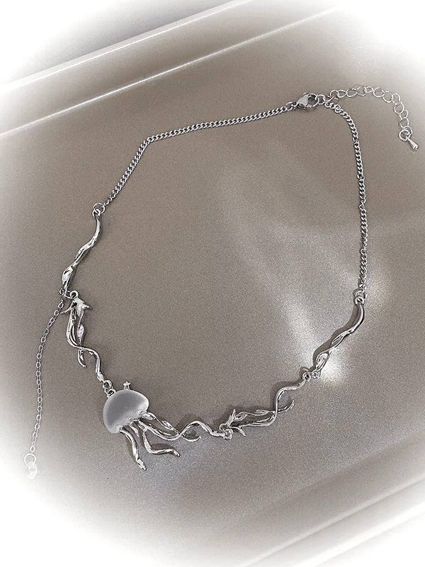 گردنبند زنانه طرح عروس دریایی مات – مدل یقهای نامنظم آویز منگولهای شیک مهمانی