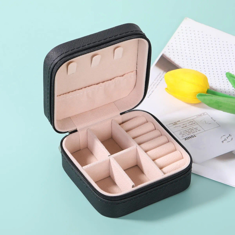 جعبه جواهرات چرمی مسافرتی شیک و زیپدار با رنگ بندی – نگهداری زیورآلات در سفر