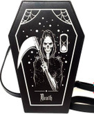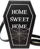 یک کیف رودوشی فانتزی با طراحی خاص به شکل تابوت همراه با نوشتهی جذاب Home Sweet Home و طرح تار عنکبوت، مناسب برای جوانان و علاقهمندان به سبک گاتیک. این کیف از جنس چرم مصنوعی تولید شده، دارای بندی قابل تنظیم و محفظهای جادار است که استفاده روزمره و ظاهری منحصر به فرد را ارائه میدهد.
