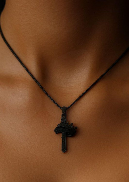 گردنبند صلیب نگین‌دار با تاج نگین‌دار