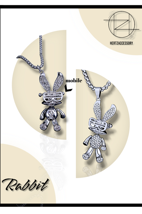 گردنبند خرگوش متحرک بسیار کار زینتی با نگین کاری بسیار تمیز و جذاب با قابلیت مترک بودن دست، پا و عینک که بسیار باعث خاص بودن این گردنبند میشود .